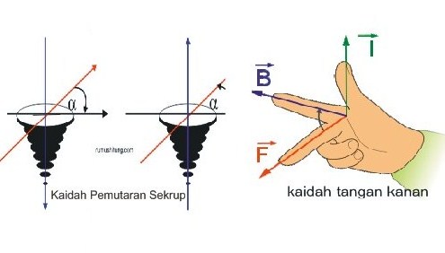 Hal ini dikarenakan arah gaya Lorentz akan selalu tegak lurus dengan arah arus listrik (I) pada induksi medan magnet yang ada, sehingga arah gaya Lorentz akan selalu mengikuti arah maju ulir. vektor dari arah gerak muatan listrik ke arah medan magnet. Lalu dan Cara menentukan arah gaya Lorentz dan menerapkan arah gaya Lorentz dapat dilakukan dengan dua cara yaitu [1] pertama dengan kaidah tangan kanan (ibu jari arah arus listrik, jari telunjuk arah medan magnet dan jari tengah arah gaya Lorentz) dan [2] Keduanya dengan aturan putar sekrup.