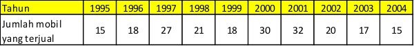 Pada akhir tahun 1995 – 2004, dealer mobil selalu mencatat jumlah mobil yang terjual, berikut laporannya: