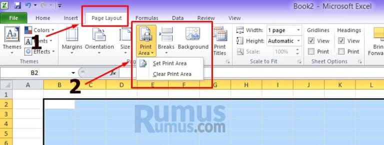 - Pilih “bidang cetak”lalu pilih “Atur area cetak” atau dengan cara cepat dengan menekan tombol ALT+P , R. S