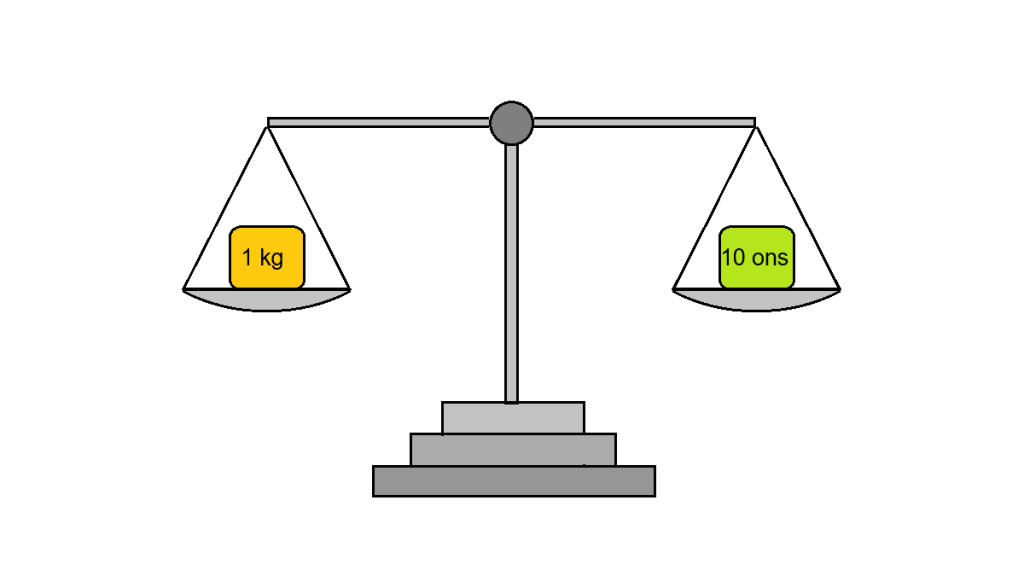 • 1 kg = 10 ons