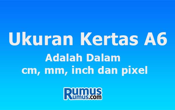 Kertas A6 dalam satuan centimeter (cm) sesuai standar ISO 216 yaitu 10,5 cm x 14,8 cm.